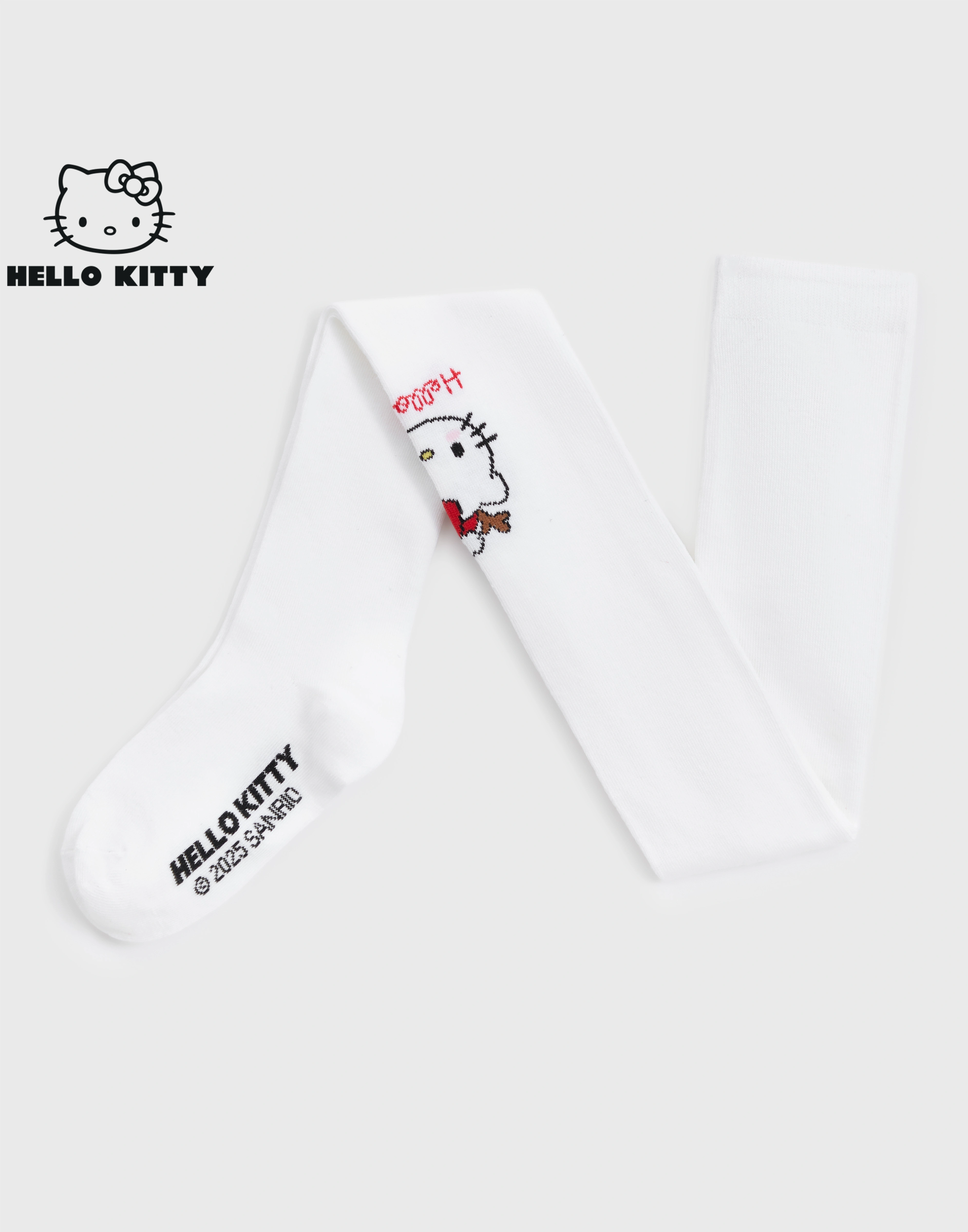 Белые колготки с новогодним принтом Hello Kitty для девочки Ghs011118-1