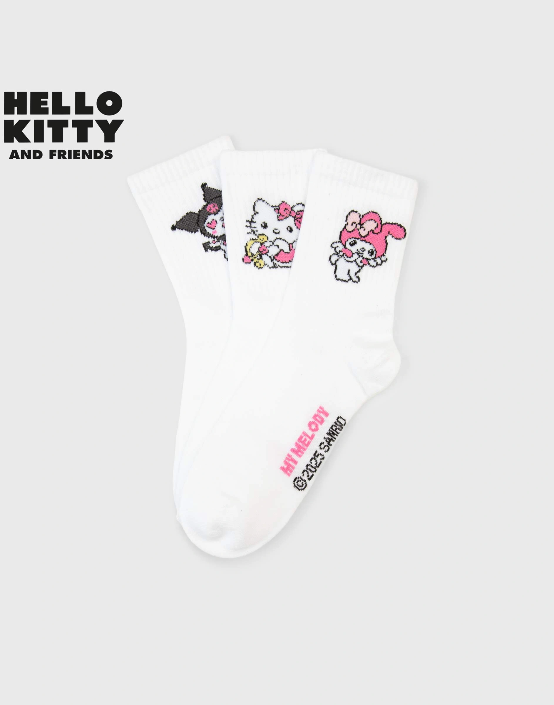Белые носки с принтом Hello Kitty 3 пары Ghs010432-1