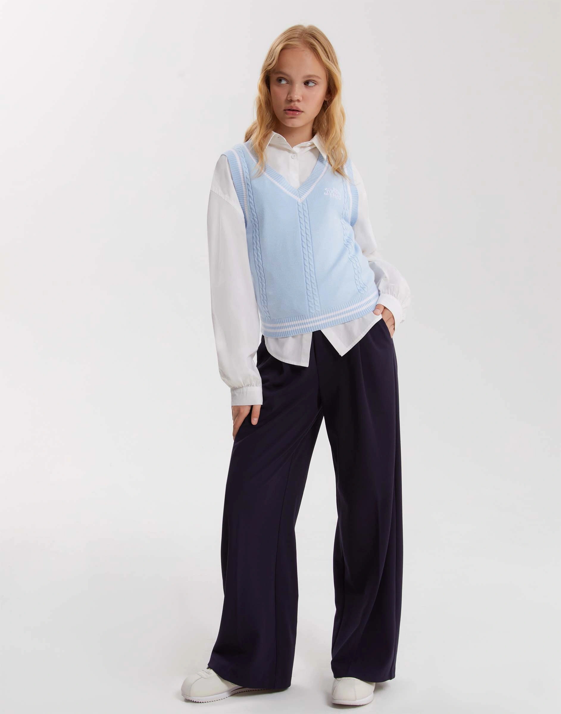 Тёмно-синие широкие Wide leg брюки с защипами Gpt010698-2