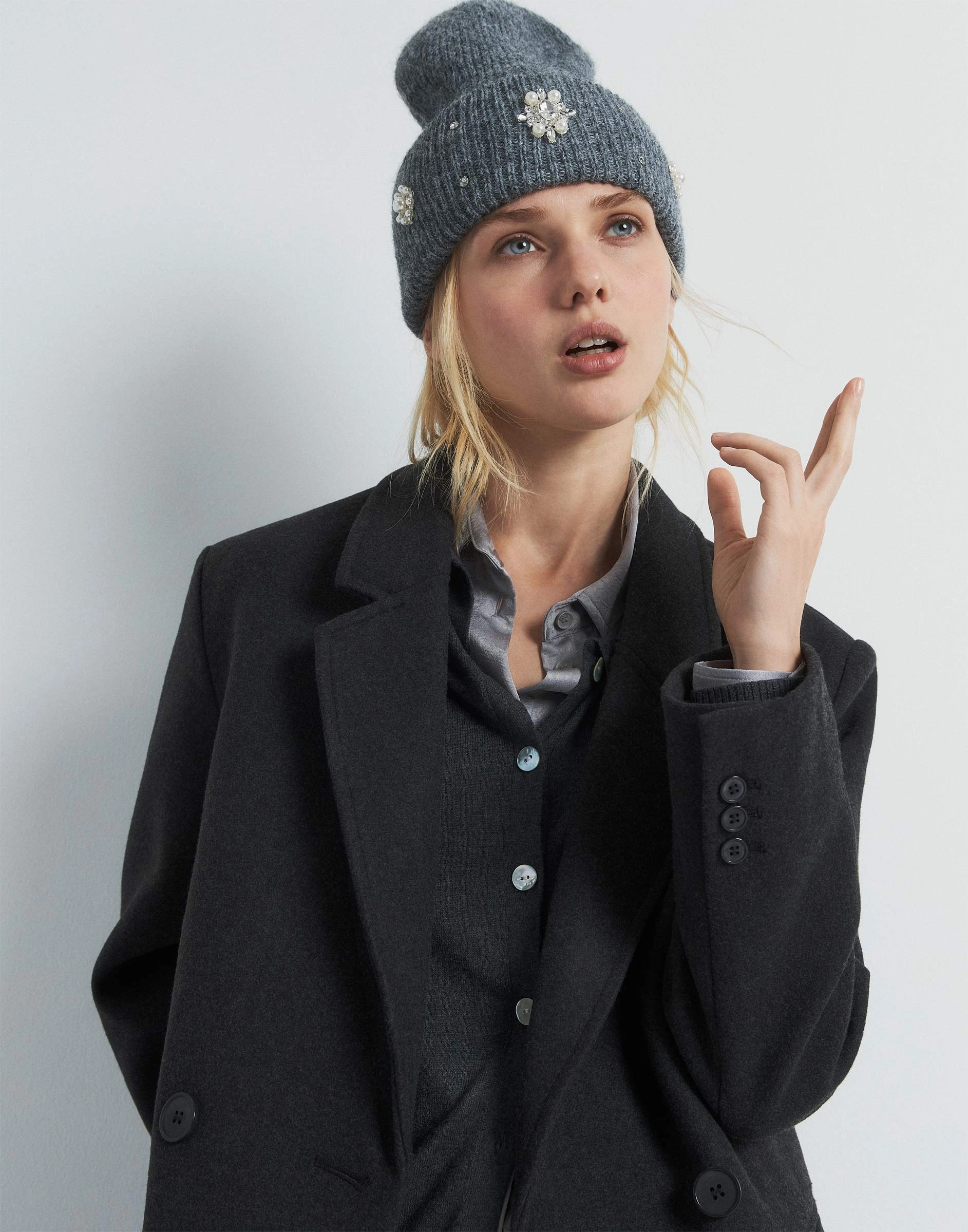 Серая шапка-бини со стразами Gas016886-1