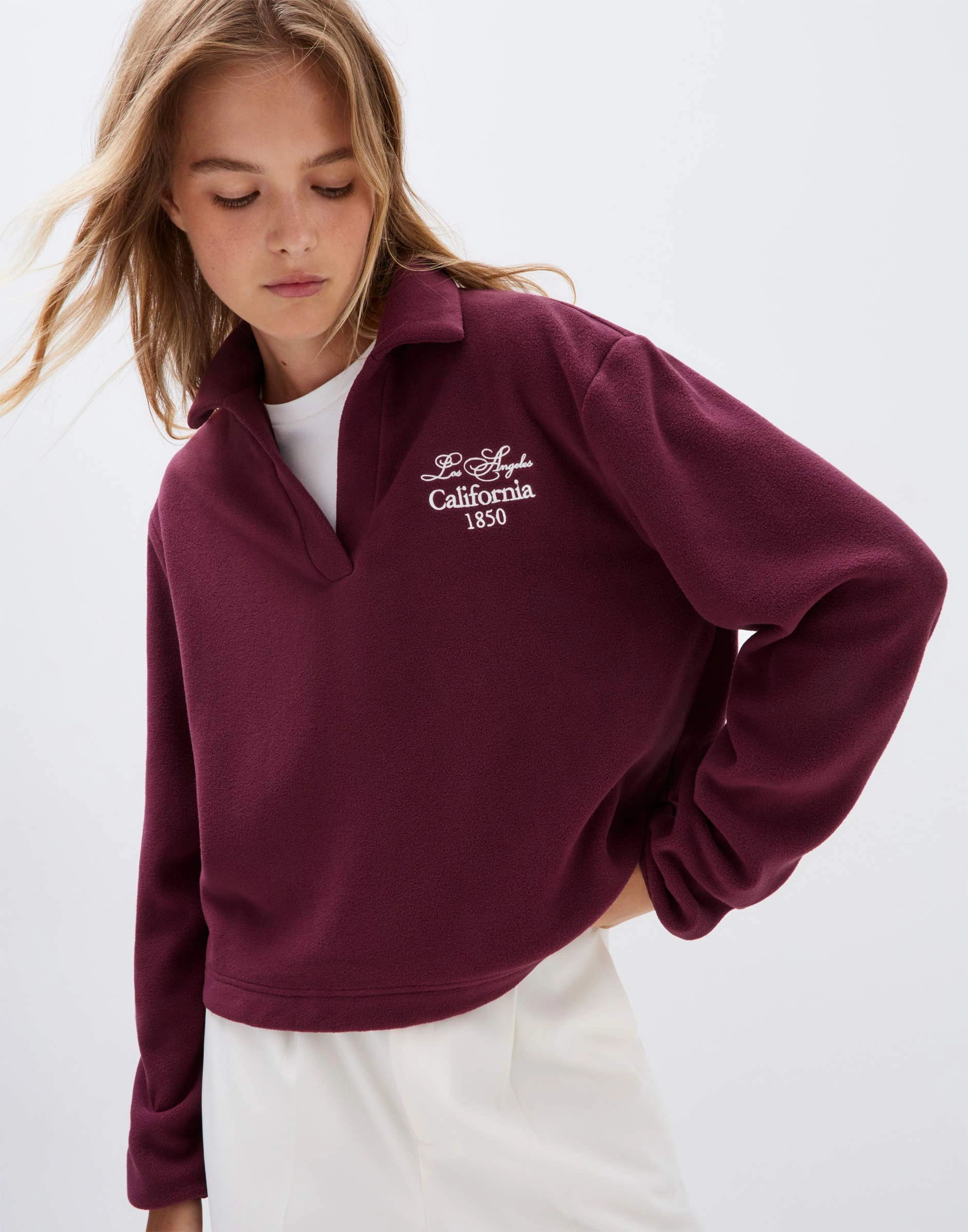 Бордовый свитшот-поло oversize с вышивкой Gac025008-1