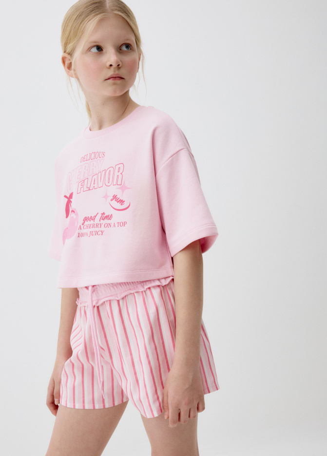Укороченная футболка из футера для девочек 5805050237_90
